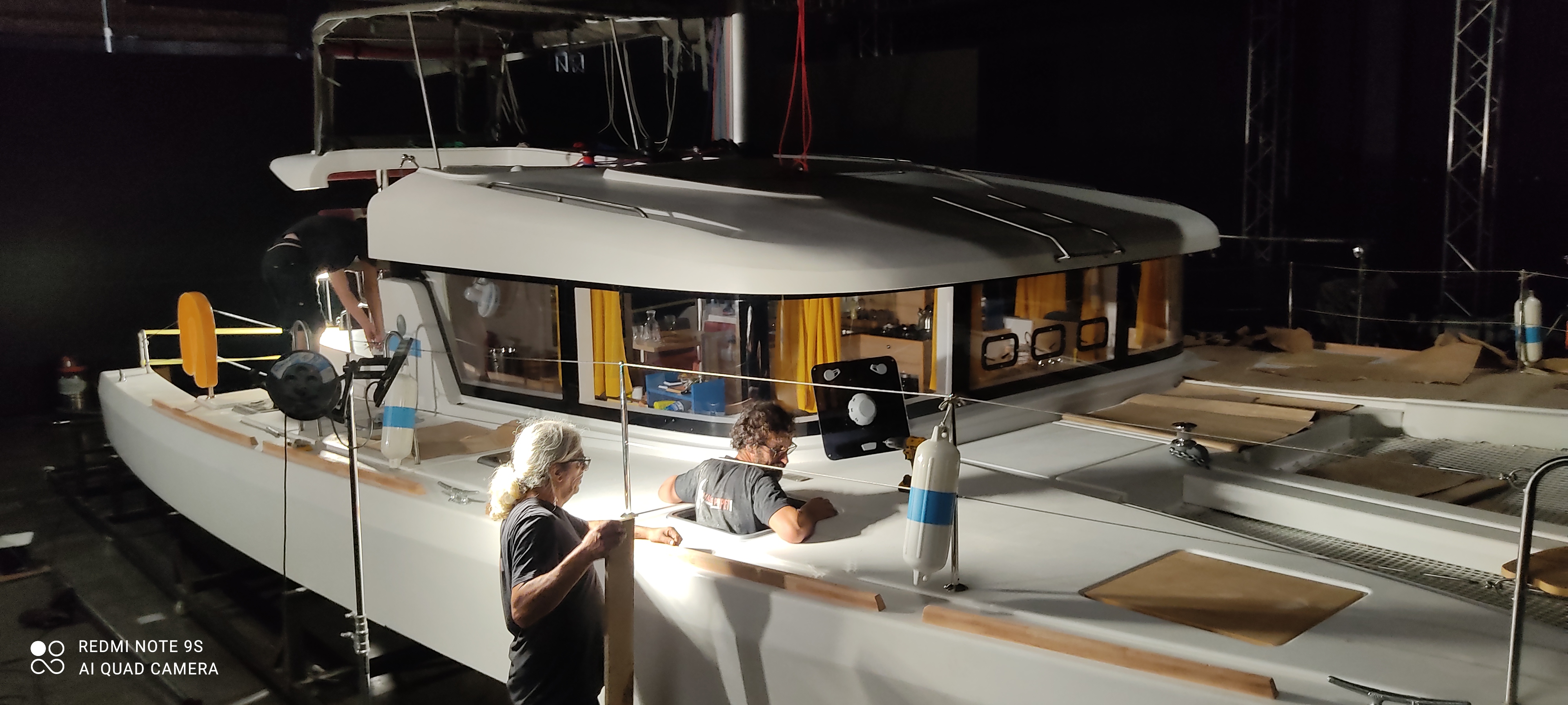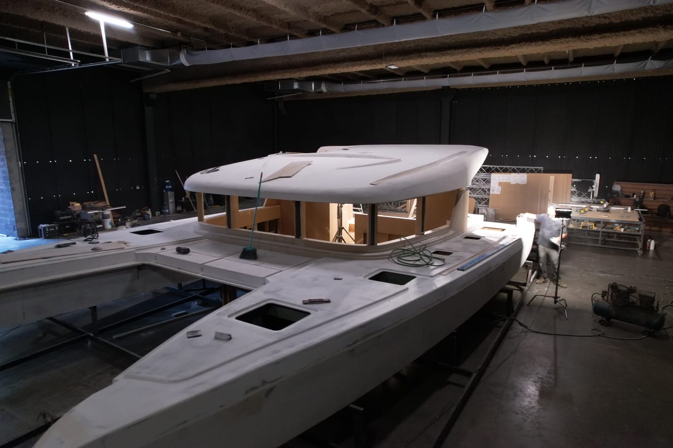 Construcción del interior del barco (catamarán). Construcción exterior catamarán completo en Estudio Reducto. Fxuruguay / Máster and Props.
