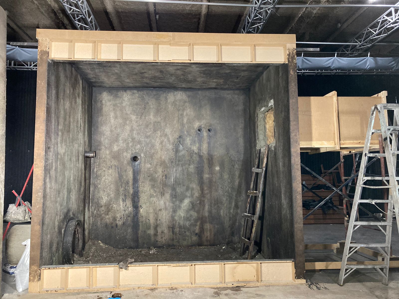 Construcción y ambientación Cárcel central. Realización en estudio túnel de fuga, cloacas y efecto derrumbes.